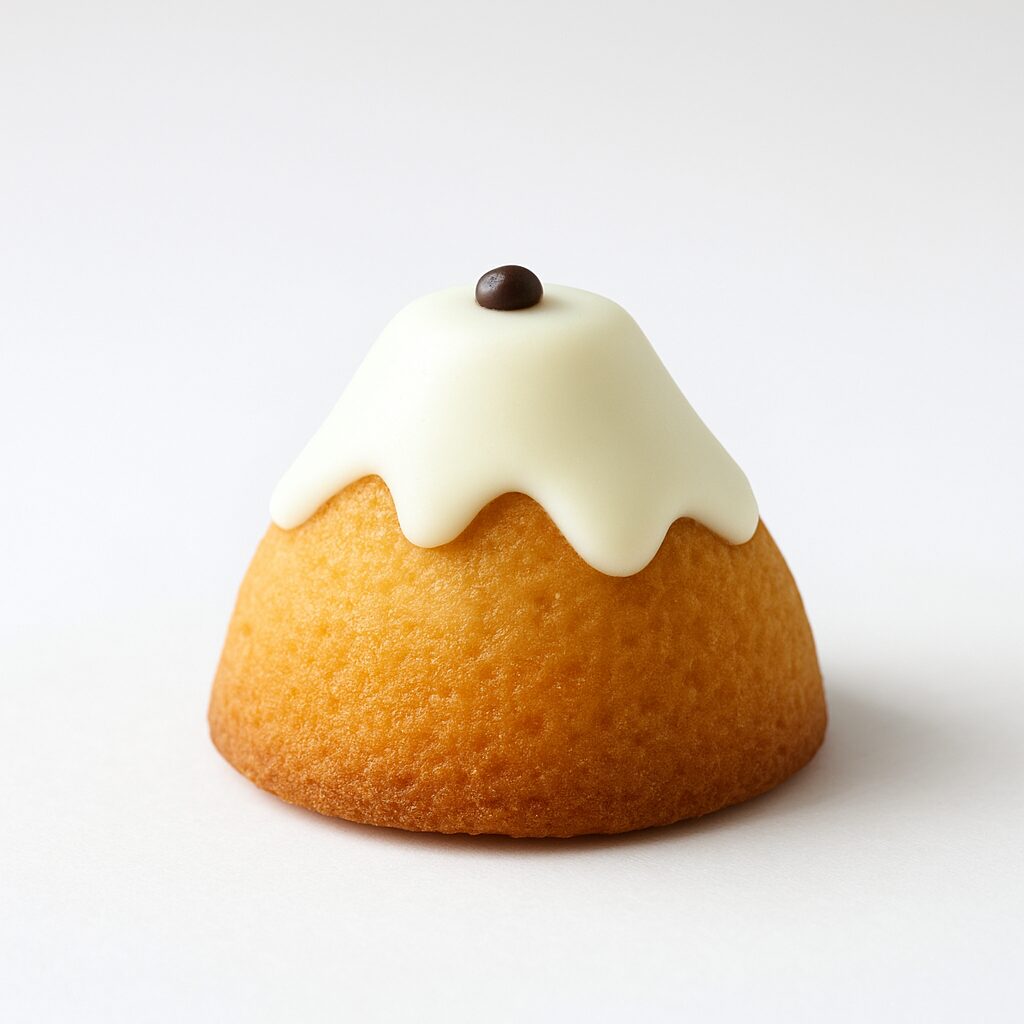 「富士山頂」は、創業30周年を記念して誕生した洋風銘菓。富士山型のふわっと軽いスポンジの中に特製カスタードクリームを詰め、上部を雪化粧に見立てたホワイトチョコでコーティング、頂にチョコビーズを飾った一品です。見た目の可愛さとリッチな味わいで、最中に続く“もう一つの看板”として定着しています。